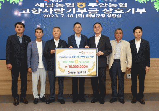 [¹Ìµð¾îÀü³² Á¦°¥´ëÁ¾ ±âÀÚ]ÇØ³²³óÇù°ú ¹«¾È³óÇùÀº °íÇâ»ç¶û±âºÎÁ¦ Ȱ¼ºÈ¸¦ À§ÇØ °¢ Á¶ÇÕ ÀÓÁ÷¿ø 100¸íÀÇ ¶æÀ» ¸ð¾Æ ¸¶·ÃÇÑ ±âºÎ±Ý 1,000¸¸¿ø¾¿À» »óÈ£ Áö¿ª¿¡ ±âºÎÇß´Ù. Áö³ 18ÀÏ ÇØ³²±ºÃ»¿¡¼ ÁøÇàµÈ ±âŹ½Ä¿¡´Â ÇØ³²³óÇù Àå½Â¿µ Á¶¡¦