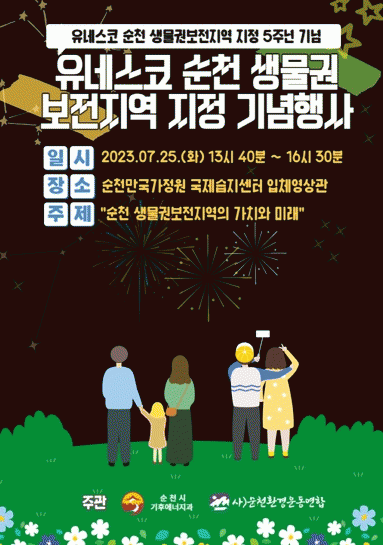 [¹Ìµð¾îÀü³² ÀÓ¼º¿Ï ±âÀÚ]¼øÃµ½Ã´Â À¯³×½ºÄÚ »ý¹°±Çº¸ÀüÁö¿ª ÁöÁ¤ 5ÁÖ³âÀ» ¸Â¾Æ ¿À´Ã 7¿ù 25ÀÏ ¼øÃµ¸¸±¹°¡Á¤¿ø ±¹Á¦½ÀÁö¼¾ÅÍ¿¡¼ ±â³äÇà»ç¸¦ °®´Â´Ù°í ¹àÇû´Ù. À̹ø ±â³äÇà»ç¿¡¼ ¼øÃµ »ý¹°±Çº¸ÀüÁö¿ªÀÇ °¡Ä¡¸¦ µÇ»õ±â°í ÀνÄÁõÁøÀ» °È¡¦