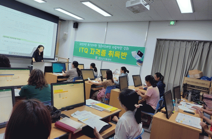 [¹Ìµð¾îÀü³² Á¦°¥´ëÁ¾ ±âÀÚ]¿µ¾Ï±º°¡Á·¼¾ÅͰ¡ °áÈ¥ÀÌÁÖ¿©¼ºÀÌ Âü¿©ÇÏ´Â Á¤º¸±â¼úÀÚ°Ý(ITQ) Ãëµæ ÄÄÇ»ÅÍ ±³À°À» ½Ç½ÃÇϰí ÀÖ´Ù. Áö³ 6¿ù ½ÃÀÛµÈ ¡®¿¢¼¿¡¯ ¾ß°£¹ÝÀº ¸ÅÁÖ ¿ù¡¤¼ö¡¤±Ý¿äÀÏ ÃÑ 16ȸ ÁøÇàµÆ°í, ¼ö°»ý Áß 11¸íÀÌ ½ÃÇè¿¡ ÀÀ½Ã¡¦