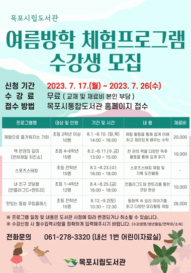 [¹Ìµð¾îÀü³² °í±Ô¼® ±âÀÚ]¸ñÆ÷½Ã¸³µµ¼°üÀÌ ¾î¸°À̵éÀ» À§ÇÑ ¿©¸§¹æÇРüÇèÇÁ·Î±×·¥°ú ¿©¸§µ¶¼±³½Ç Âü°¡ÀÚ¸¦ ¸ðÁýÇÑ´Ù. 8¿ù 1ÀϺÎÅÍ 9¿ù 2ÀϱîÁö ÁøÇàµÇ´Â ¿©¸§¹æÇРüÇèÇÁ·Î±×·¥Àº ¡ãüÇèÀ¸·Î Áñ°Å¿öÁö´Â ±âÇÏ ¡ãÃ¥ ÇѱÇÀÇ ±íÀÌ: õÇÏ¡¦