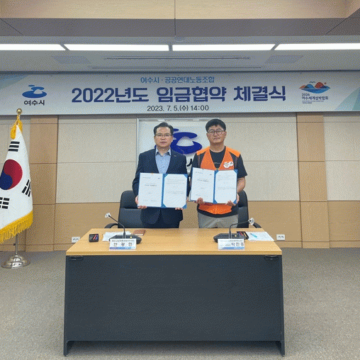 [¹Ìµð¾îÀü³² ÀüÇü¼º ±âÀÚ]¿©¼ö½Ã¿Í °ø°ø¿¬´ë³ëµ¿Á¶ÇÕ(°ø¹«Á÷ ³ëÁ¶)Àº 2022³âµµ ÀÓ±ÝÇù»óÀ» ü°áÇß´Ù. ¿©¼ö½Ã´Â Áö³ 5ÀÏ °ø°ø¿¬´ë³ëµ¿Á¶ÇÕ°ú ½Ãû »óȲ½Ç¿¡¼ 2022³âµµ ÀÓ±ÝÇù¾àÀ» ü°áÇß´Ù°í ¹àÇû´Ù. ÁÖ¿ä Çù¾à ³»¿ëÀº ¿©¼ö½Ã °ø¹«Á÷ ¡¦