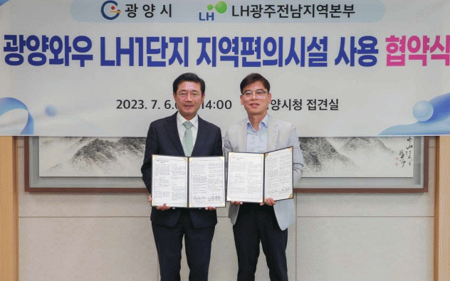 [¹Ìµð¾îÀü³² ÀÓ¼º¿Ï ±âÀÚ]±¤¾ç½Ã´Â 7¿ù 6ÀÏ ¿ÀÈÄ 2½Ã ½Ãû Á¢°ß½Ç¿¡¼ Á¤ÀÎÈ ±¤¾ç½ÃÀå°ú ±è°æÁø Çѱ¹ÅäÁöÁÖÅðø»ç ±¤ÁÖÀü³²Áö¿ªº»ºÎ Áְź¹Áö»ç¾÷óÀåÀÌ Âü¼®ÇÑ °¡¿îµ¥ ±¤¾ç¿Í¿ì LH1´ÜÁö Áö¿ªÆíÀǽü³ »ç¿ëÀ» À§ÇÑ Çù¾àÀ» ü°áÇß´Ù°í ¹à¡¦