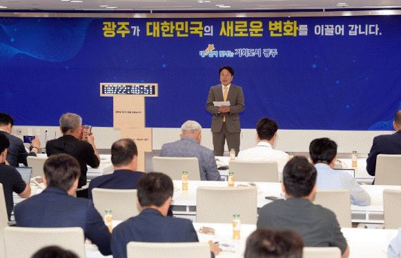 [¹Ìµð¾îÀü³² Á¦°¥´ëÁ¾ ±âÀÚ]°±âÁ¤ ±¤ÁÖ±¤¿ª½ÃÀåÀº 29ÀÏ ¡°Áö³ 1³âÀº º¯È¿Í µµÀüÀ¸·Î ä¿öÁø 8760½Ã°£À̾ú´Ù¡±¸ç ¡°´ëÇѹα¹ÀÇ ¹ÎÁÖÁÖÀǸ¦ À̲ø¾ú´ø ±¤ÁÖ´Â ÀÌÁ¦ ´ëÇѹα¹ÀÇ »õ·Î¿î º¯È¿Í µµÀüÀ» À̲ø¾î°¡°Ú´Ù¡±°í ¹àÇû´Ù. ° ½ÃÀåÀº¡¦