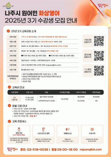 [¹Ìµð¾îÀü³² Á¦°¥´ëÁ¾ ±âÀÚ]Àü¶ó³²µµ ³ªÁֽô 9¿ù 25ÀϺÎÅÍ 10¿ù 15ÀϱîÁö ³ªÁֽà ÃÊ¡¤ÁßÇлýÀ» ´ë»óÀ¸·Î ¡®¿ø¾î¹Î Ȼ󿵾î 3±â¡¯ ¼ö°»ýÀ» ¸ðÁýÇÑ´Ù°í ¹àÇû´Ù. ÇлýµéÀÌ ¿ø¾î¹Î°ú ½Ç½Ã°£ 1:3 ±×·ì È»ó¿µ¾î ¼ö¾÷À» ÅëÇØ ¿µ¾î¿¡ ´ëÇÑ ¡¦