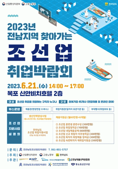 [¹Ìµð¾îÀü³² Á¦°¥´ëÁ¾ ±âÀÚ]Àü¶ó³²µµ´Â ÃÖ±Ù Á¶¼±¾÷ ¼öÁÖ È£È²¿¡ µû¸¥ ¾ÈÁ¤ÀûÀÎ Àη ¼ö±Þ Áö¿øÀ» À§ÇØ ¿À´Â 21ÀÏ ¸ñÆ÷ ½Å¾ÈºñġȣÅÚ¿¡¼ ¡®Ã£¾Æ°¡´Â Á¶¼±¾÷ Ãë¾÷¹Ú¶÷ȸ¡¯¸¦ °³ÃÖÇÑ´Ù°í ¹àÇû´Ù. »ê¾÷Åë»óÀÚ¿øºÎ, °í¿ë³ëµ¿ºÎ, Àü¶ó³²µµ°¡¡¦