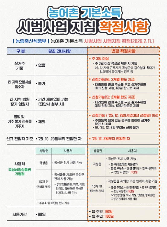 [¹Ìµð¾îÀü³² Á¦°¥´ëÁ¾ ±âÀÚ] Àü³² °î¼º±ºÀº ³ó¸²Ãà»ê½ÄǰºÎÀÇ ³ó¾îÃÌ ±âº»¼Òµæ ½ÃÇà Áöħ È®Á¤¿¡ µû¶ó °ÅÁÖ ±âÁذú Áö±Þ ´ë»ó, »ç¿ëó ±âÁØ µîÀÌ ÀϺΠº¯°æµÆ´Ù°í 23ÀÏ ¹àÇû´Ù. ³ó¾îÃÌ ±âº»¼ÒµæÀº °î¼º±º¿¡ 30ÀÏ ÀÌ»ó Áֹεî·ÏÀ» µÎ°í ¡¦