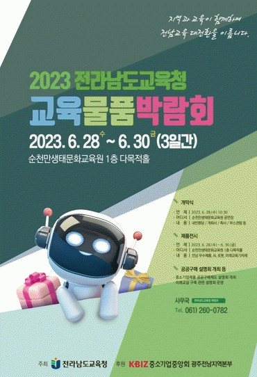 [¹Ìµð¾îÀü³² Á¦°¥´ëÁ¾ ±âÀÚ]Àü¶ó³²µµ±³À°Ã»ÀÌ Áö¿ª°æÁ¦ Ȱ¼ºÈ¸¦ À§ÇØ Áö¿ª°ú ±³À°ÀÌ ÇÔ²²ÇÏ´Â 2023. Àü¶ó³²µµ±³À°Ã» ±³À°¹°Ç°¹Ú¶÷ȸ¸¦ 6¿ù 28ÀϺÎÅÍ 6¿ù 30ÀϱîÁö ¼øÃµ¸¸»ýŹ®È±³À°¿ø 1Ãþ ´Ù¸ñÀûȦ¿¡¼ °³ÃÖÇÑ´Ù. Àü³²±³À°Ã»ÀÌ Á߼ұ⡦