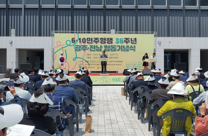 [¹Ìµð¾îÀü³² Á¦°¥´ëÁ¾ ±âÀÚ]¿ì¸®³ª¶ó ¹ÎÁÖÁÖÀÇÀÇ Å« ¿ª»çÀÎ 6¡¤10 ¹ÎÁÖÇ×Àï Á¤½ÅÀ» °è½ÂÇϱâ À§ÇÑ Á¦36ÁÖ³â 6¡¤10¹ÎÁÖÇ×Àï ±¤ÁÖ¡¤Àü³² ±â³ä½ÄÀÌ 10ÀÏ ¼øÃµºÎÀ¾¼º ³²¹®ÅÍ ±¤Àå¿¡¼ ¿·È´Ù. ¼øÃµ¸¸±¹Á¦Á¤¿ø¹Ú¶÷ȸ¸¦ ±â³äÇØ ´ëÇѹα¹ »ýÅ¡¦