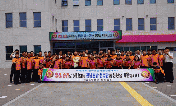 [¹Ìµð¾îÀü³² Á¦°¥´ëÁ¾ ±âÀÚ]Àü³²¼Ò¹æº»ºÎ´Â 7ÀÏ Á¦36ȸ Àü±¹ ¼Ò¹æ±â¼ú°æ¿¬´ëȸ ÃâÀü ¼±¼ö´ÜÀ» °Ý·ÁÇÏ°í ¼±ÀüÀ» ±â¿øÇÏ´Â °Ý·ÁÀÇ ÀÚ¸®¸¦ ¸¶·ÃÇß´Ù. ¿ÃÇØ·Î 36ȸ°¸¦ ¸Â´Â Àü±¹ ¼Ò¹æ±â¼ú°æ¿¬´ëȸ´Â 6¿ù 13ÀϺÎÅÍ 16ÀϱîÁö ³ªÈê µ¿¾È Ãæ³² ¡¦