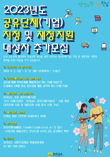 [¹Ìµð¾îÀü³² Á¦°¥´ëÁ¾ ±âÀÚ]Àü¶ó³²µµ´Â °øÀ¯°æÁ¦ Ȱ¼ºÈ¿Í °øÀ¯¹®È È®»êÀ» À§ÇÑ ¡®2023³â °øÀ¯´Üü(±â¾÷) ÁöÁ¤ ¹× ÀçÁ¤Áö¿ø »ç¾÷¡¯ Âü¿© ´Üü¸¦ ¿À´Â 12ÀϱîÁö Ãß°¡ ¸ðÁýÇÑ´Ù°í ¹àÇû´Ù. Áö¿ø ´ë»óÀº Áö½Ä, °æÇè, ¹°Ç°, Àå¼Ò µîÀÇ °øÀ¯¸¦¡¦