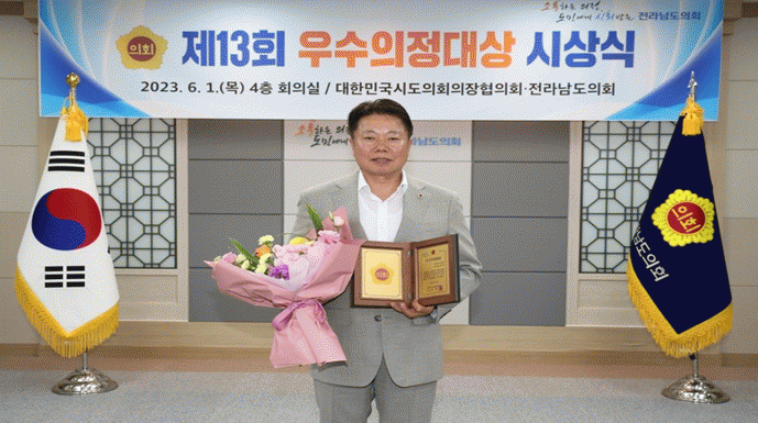 [¹Ìµð¾îÀü³² Á¦°¥´ëÁ¾ ±âÀÚ]Àü³²µµÀÇȸ ½Å½Âö ÀÇ¿ø(´õºÒ¾î¹ÎÁÖ´ç, ¿µ¾Ï1)ÀÌ 6¿ù 1ÀÏ ´ëÇѹα¹½Ã¡¤µµÀÇȸÀÇÀåÇùÀÇȸ ÁÖ°ü ¡®Á¦13ȸ ¿ì¼öÀÇÁ¤ ´ë»ó¡¯¿¡¼ ¿ì¼öÀÇÁ¤´ë»óÀ» ¼ö»óÇß´Ù. ¿ì¼öÀÇÁ¤´ë»óÀº ´ëÇѹα¹ ½Ã.µµÀÇȸÀÇÀåÇùÀÇȸ¿¡¼ Áö¿ª¡¦
