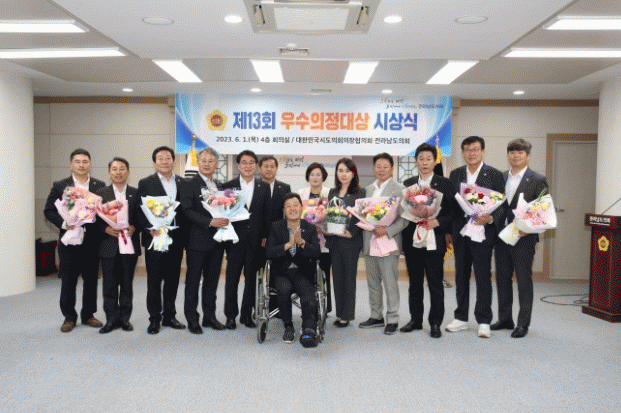 [¹Ìµð¾îÀü³² Á¦°¥´ëÁ¾ ±âÀÚ]Àü¶ó³²µµÀÇȸ´Â 1ÀÏ, ´ëÇѹα¹½ÃµµÀÇȸÀÇÀåÇùÀÇȸ¿¡¼ ¼±Á¤ÇÑ ¡®Á¦13ȸ ¿ì¼öÀÇÁ¤´ë»ó¡¯ ¼ö»ó µµÀÇ¿ø 12¸í¿¡°Ô »óÆÐ¸¦ Àü¼öÇß´Ù. ¿ì¼öÀÇÁ¤´ë»óÀº Àü±¹ ½ÃµµÀÇ¿ø °¡¿îµ¥ Çå½ÅÀûÀÎ ³ë·Â°ú ¶Ù¾î³ ÀÇÁ¤È°µ¿À¸·Î ¡¦