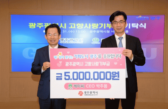 [¹Ìµð¾îÀü³² Á¦°¥´ëÁ¾ ±âÀÚ]±¤ÁÖ±¤¿ª½Ã´Â ¿µ¾Ï ´ëºÒ»ê´Ü¿¡ ¼ÒÀçÇÑ ÄÉÀ̾¾¢ßÀÇ CEO ¹ÚÁÖ¿ë ÃѰýºÎ»çÀåÀÌ 5¿ù31ÀÏ °íÇâ»ç¶û±âºÎ±ÝÀ¸·Î 500¸¸¿øÀ» ±âŹÇß´Ù°í ¹àÇû´Ù. ÄÉÀ̾¾¢ß´Â ´ëÁÖKC±×·ìÀÇ Áַ±â¾÷À¸·Î, 2001³â ¼³¸³ ÀÌÈÄ ±âÃÊÁ¤¹ÐÈÇС¦