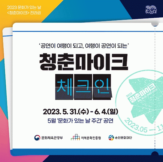 [¹Ìµð¾îÀü³² ÀÓ¼º¿Ï ±âÀÚ]¼øÃµ¹®ÈÀç´ÜÀº ¡®2023 ¹®È°¡ ÀÖ´Â ³¯ 'ûÃḶÀÌÅ©' Àü¶ó±Ç¡¯ ù °ø¿¬À» ¹®È°¡ ÀÖ´Â ³¯ ÁÖ°£ÀÎ ¿À´Â 31ÀϺÎÅÍ 6¿ù 4ÀϱîÁö 5Àϰ£ ¼øÃµ, ±¤ÁÖ, ³ªÁÖ, ÀüÁÖ, ±º»ê °÷°÷¿¡¼ °³ÃÖÇÑ´Ù. ¼øÃµ¹®ÈÀç´ÜÀº ¡®2023 ¹®¡¦