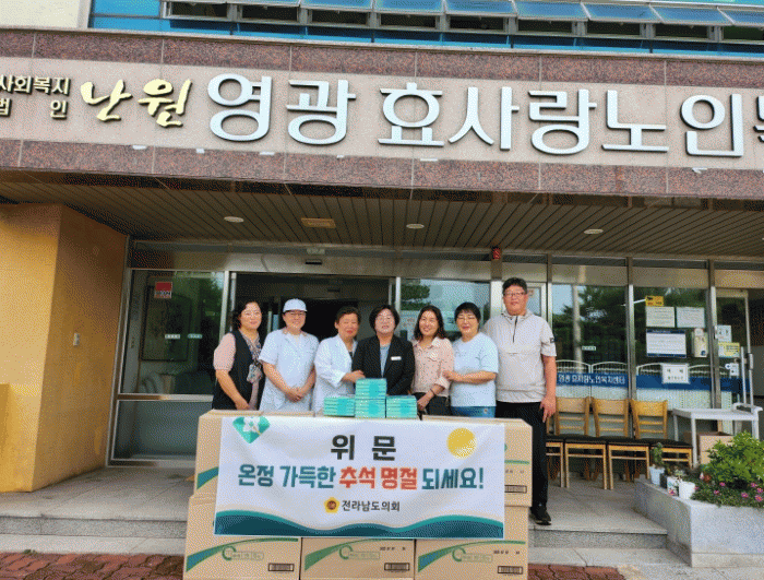 [¹Ìµð¾îÀü³² Á¦°¥´ëÁ¾ ±âÀÚ]Àü¶ó³²µµÀÇȸ ¿À¹ÌÈ(Áøº¸´ç¡¤¿µ±¤2) ÀÇ¿øÀÌ Ãß¼® ¸íÀýÀ» ¾ÕµÐ 9¿ù 24ÀÏ, ¿µ±¤±º ¹ý¼º¸é ¡®¿µ±¤È¿»ç¶û³ëÀκ¹Áö¼¾ÅÍ¡¯¸¦ ¹æ¹®ÇØ ¾î¸£½Åµé°ú Á¾»çÀÚµéÀ» °Ý·ÁÇϰí À§¹®Ç°À» Àü´ÞÇß´Ù. ¿µ±¤È¿»ç¶û³ëÀκ¹Áö¼¾Åʹ¡¦