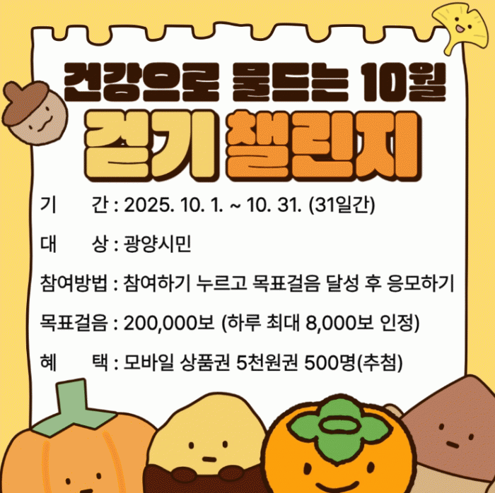 [¹Ìµð¾îÀü³² ÀÓ¼º¿Ï ±âÀÚ]±¤¾ç½Ã´Â Áö¿ª ÁÖ¹ÎÀÇ °Ç°»ýȰ½ÇõÀ» Áö¿øÇϱâ À§ÇØ ¿À´Â 10¿ù 1ÀϺÎÅÍ 10¿ù 31ÀϱîÁö ¸ð¹ÙÀÏ °È±â ¾Û ¡®¿öÅ©¿Â¡¯À» ÅëÇØ ¡®°Ç°À¸·Î ¹°µå´Â 10¿ù °È±â 縰Áö¡¯¸¦ ¿î¿µÇÑ´Ù°í ¹àÇû´Ù. À̹ø °È±â 縰Áö´Â 1°É¡¦