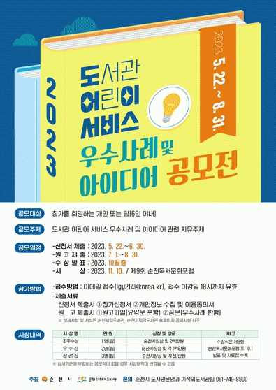 [¹Ìµð¾îÀü³² ÀÓ¼º¿Ï ±âÀÚ]¼øÃµ½Ã´Â ¼øÃµ±âÀûÀǵµ¼°ü 20ÁÖ³âÀ» ¸Â¾Æ 8¿ù 31ÀϱîÁö, Àü ±¹¹ÎÀ» ´ë»óÀ¸·Î ¡®2023³â µµ¼°ü ¾î¸°À̼ºñ½º ¿ì¼ö»ç·Ê ¹× ¾ÆÀ̵ð¾î °ø¸ðÀü¡¯À» °³ÃÖÇÑ´Ù. 2003³â °³°ü ÀÌÈÄ Àü±¹ ¾î¸°À̵µ¼°ü °ø°£Á¶¼º°ú ¿î¿µÀÇ¡¦