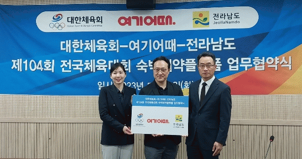 [¹Ìµð¾îÀü³² Á¦°¥´ëÁ¾ ±âÀÚ]Àü¶ó³²µµ¿Í ´ëÇÑüÀ°È¸´Â 23ÀÏ µµÃ»¿¡¼ ¿À´Â 10¿ù Á¦104ȸ Àü±¹Ã¼Àü Âü°¡¸¦ À§ÇØ ¹æ¹®ÇÏ´Â ¼±¼ö´Ü°ú °ü¶÷°´ÀÇ ¼÷¹Ú ÆíÀÇ ÁõÁøÀ» À§ÇØ ¿©Çà Ç÷§ÆûÀÎ ¡®¿©±â¾î¶§¡¯¿Í ¾÷¹«Çù¾àÀ» Çß´Ù. Àü³²µµ´Â 2008³â ÀÌÈÄ¡¦