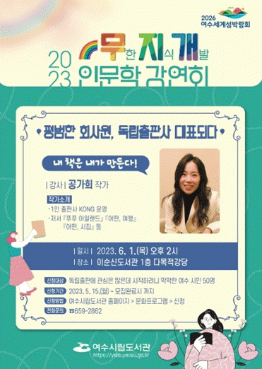 [¹Ìµð¾îÀü³² ÀüÇü¼º ±âÀÚ]¿©¼ö À̼ø½Åµµ¼°ü¿¡¼ ¿À´Â 6¿ù 1ÀÏ ¿ÀÈÄ 2½Ã, ¡®¹«Áö°³(¹«ÇÑÁö½Ä°³¹ß) Àι®ÇÐ °¿¬È¸¡¯°¡ °³ÃֵȴÙ. °¿¬È¸´Â ¡®°ø°¡Èñ¡¯ ÀÛ°¡°¡ ¡®Æò¹üÇÑ È¸»ç¿ø, µ¶¸³ÃâÆÇ»ç ´ëÇ¥µÇ´Ù¡¯ ¶ó´Â ÁÖÁ¦·Î 13³â°£ ´Ù´Ï´ø Á÷ÀåÀ»¡¦