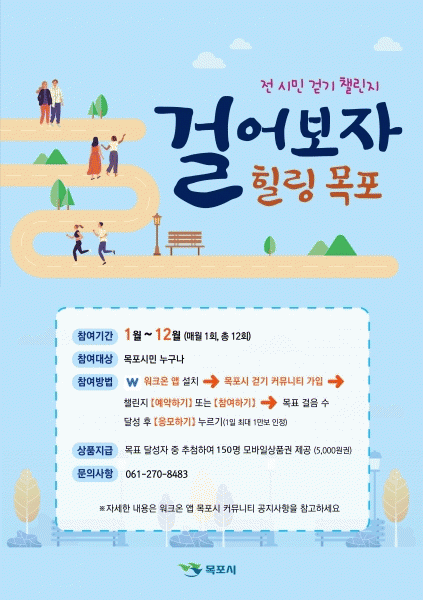 [¹Ìµð¾îÀü³² °í±Ô¼® ±âÀÚ] ¸ñÆ÷½Ã°¡ ½Ã¹ÎÀÇ °Ç°ÁõÁø ¹× °Ç°»ýȰ Çâ»óÀ» À§ÇØ 1¿ùºÎÅÍ ¿î¿µÇϰí ÀÖ´Â ¡®Àü ½Ã¹Î °È±â 縰Áö¡¯ÀÇ »óǰ ¼öÇýÀÚ¸¦ ¿ù 120¸í¿¡¼ 150¸íÀ¸·Î Áõ¿øÇÑ´Ù. ¿öÅ©¿ÂÀº °È±â Ȱ¼ºÈ ¸ð¹ÙÀÏ ¾ÛÀ¸·Î ¸ñÆ÷½Ã¹ÎÀÌ¸é ´©¡¦