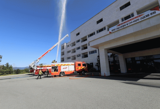 [¹Ìµð¾îÀü³² °í±Ô¼® ±âÀÚ]°Áø¼Ò¹æ¼´Â 9¿ù 23ÀÏ °Áø±º ´Ù»êº£¾ÆÃ¤ ¸®Á¶Æ®¿¡¼ ´ë±Ô¸ð Àç³ »óȲÀ» ´ëºñÇÑ 2025³â ±ä±Þ±¸Á¶Á¾ÇÕÈÆ·ÃÀ» ½Ç½ÃÇß´Ù. À̹ø ÈÆ·ÃÀº Àç³ ¹ß»ý ½Ã À¯°ü±â°ü °£ÀÇ °øÁ¶Ã¼°è¸¦ °ÈÇϰí, ½ÇÁ¦ ÇöÀå°ú °°Àº ´ëÀÀ´É¡¦