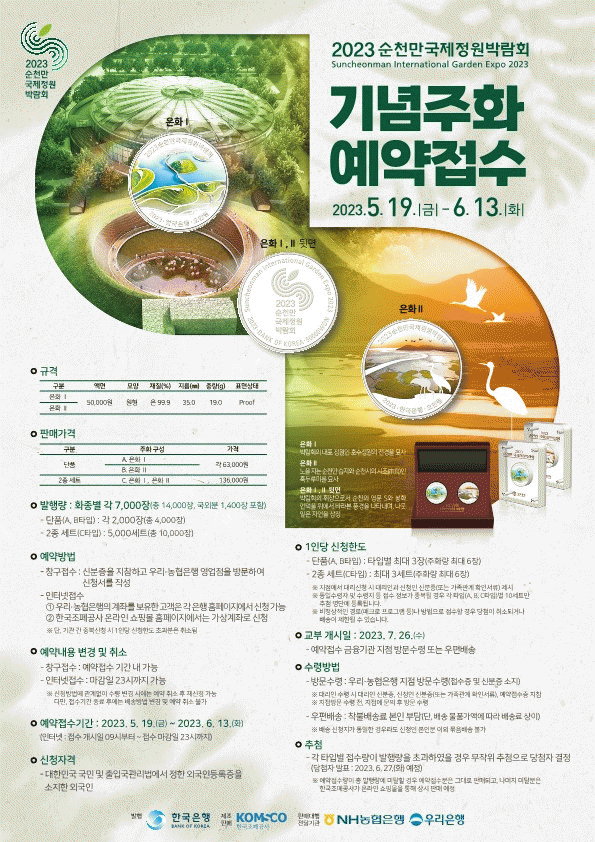 [¹Ìµð¾îÀü³² ÀÓ¼º¿Ï ±âÀÚ] Çѱ¹ÀºÇàÀÌ 2023¼øÃµ¸¸±¹Á¦Á¤¿ø¹Ú¶÷ȸÀÇ ±¹Á¦Àû È«º¸¸¦ À§ÇØ ¹Ú¶÷ȸ ±â³äÁÖȸ¦ ¹ßÇàÇÑ´Ù. ¹ßÇàÈÁ¾Àº ÀºÈ 5¸¸¿øÈ·Î 2º»À̸ç ÈÁ¾º°·Î 7õÀ徿, ÃÑ 1¸¸ 4õ ÀåÀÌ ¹ßÇàµÈ´Ù. ¿À´Â 19ÀϺÎÅÍ ´ÙÀ½´Þ 13ÀϱîÁö¡¦