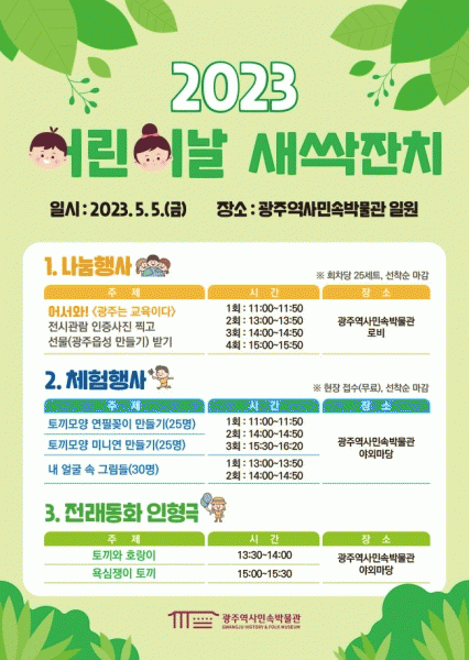 [¹Ìµð¾îÀü³² Á¦°¥´ëÁ¾ ±âÀÚ] ±¤ÁÖ¿ª»ç¹Î¼Ó¹Ú¹°°üÀº 5ÀÏ ¡®Á¦101ȸ ¾î¸°À̳¯¡¯À» ¸Â¾Æ ¹Ú¹°°ü ÀÏ¿ø¿¡¼ ¿Â °¡Á·ÀÌ ÇÔ²²ÇÒ ¼ö ÀÖ´Â ¡®¾î¸°À̳¯ »õ½ÏÀÜÄ¡¡¯¸¦ °³ÃÖÇÑ´Ù. À̳¯ Çà»ç´Â ¾î¸°ÀÌ»Ó ¾Æ´Ï¶ó ¿Â °¡Á·ÀÌ ÇÔ²² Áñ±æ ¼ö ÀÖ´Â ¡®³ª´®¡¤¡¦
