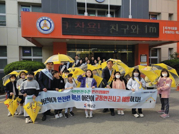 [¹Ìµð¾îÀü³² Á¦°¥´ëÁ¾ ±âÀÚ] ÇØ³²±ºÀº ±¹¹Î¾ÈÀüÁÖ°£À» ¸Â¾Æ °ü³» 21°³ ÃʵîÇб³ Çлý 2,334¸í¿¡°Ô ¾ÈÀü¿ì»êÀ» ¹èºÎÇß´Ù. ¾ÈÀü¿ì»êÀº ´«¿¡ Àß ¶ç´Â ³ë¶õ»öÀ¸·Î ƯÈ÷ ½Ã¾ß°¡ ³·Àº ¾î¸°À̵éÀÌ Àü¹æÀ» º¸°í °ÉÀ» ¼ö ÀÖµµ·Ï ¹ÝÅõ¸í ¼ÒÀ縦 »ç¡¦