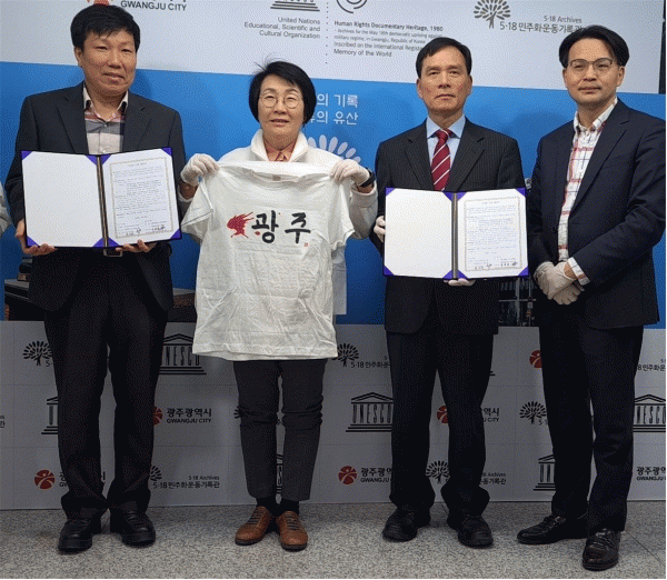 [¹Ìµð¾îÀü³² Á¦°¥´ëÁ¾ ±âÀÚ] 5¡¤18¹ÎÁÖȿ±â·Ï°üÀº 5¡¤18 ´ç½Ã ¹Ì±¹¿¡¼ ±¤ÁÖÇ×Àï ¼Ò½ÄÀ» µè°í À̸¦ ÁöÁöÇϰí Çлì±Ôź ½ÃÀ§¸¦ ÇÏ´ø Àç¹ÌÀ¯ÇлýµéÀÌ ÀÔÀº ¡®±¤ÁÖ Æ¼¼ÅÃ÷¡¯¸¦ ±âÁõ¹Þ¾Ò´Ù°í 27ÀÏ ¹àÇû´Ù. 1980³â 5¿ù ¸» °¢Á¾ ¿Ü½ÅÀ» Å롦