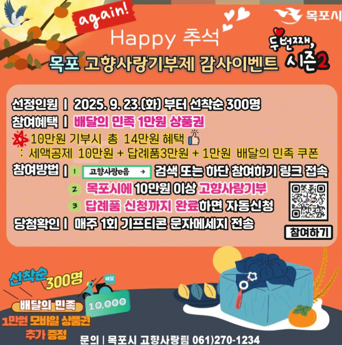 [¹Ìµð¾îÀü³² °í±Ô¼® ±âÀÚ]¸ñÆ÷½Ã´Â Áö³ 16ÀϺÎÅÍ ÁøÇàÇÑ Ãß¼® ¸íÀý¸ÂÀÌ °íÇâ»ç¶û±âºÎÁ¦ Âü¿© À̺¥Æ®°¡ ±âºÎÀÚµéÀÇ ¶ß°Å¿î ¼º¿ø¿¡ ÈûÀÔ¾î ´Ü 3ÀÏ ¸¸¿¡ Á¶±â Á¾·áµÊ¿¡ µû¶ó, ÈÄ¼Ó Çà»çÀÎ ¡®Happy Ãß¼®~ ¸ñÆ÷ °íÇâ»ç¶û±âºÎÁ¦ °¨»çÀ̺¥Æ® ½Ã¡¦