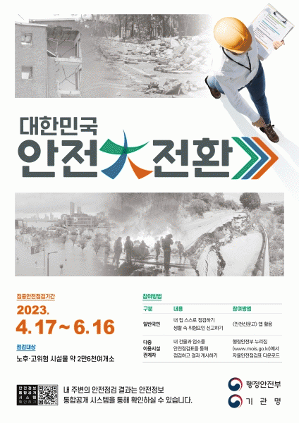 [¹Ìµð¾îÀü³² °í±Ô¼® ±âÀÚ] ¸ñÆ÷½Ã°¡ ¿À´Â 6¿ù 16ÀϱîÁö ¡®´ëÇѹα¹ ¾ÈÀüÓÞÀüȯ ÁýÁß ¾ÈÀüÁ¡°Ë¡¯À» ½Ç½ÃÇÑ´Ù. ¡®´ëÇѹα¹ ¾ÈÀüÓÞÀüȯ ÁýÁß ¾ÈÀüÁ¡°Ë¡¯Àº Àç³À̳ª »ç°í ¹ß»ýÀÌ ¿ì·ÁµÇ´Â ½Ã¼³ µî¿¡ ´ëÇØ ÁýÁßÀûÀ¸·Î ¾ÈÀüÁ¡°ËÀ» ½Ç½ÃÇØ À§Ç衦