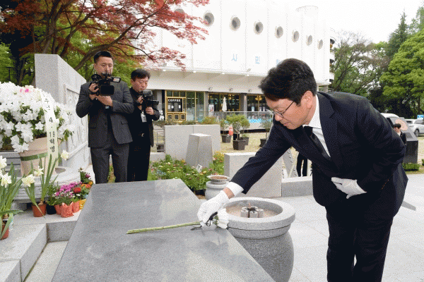 [¹Ìµð¾îÀü³² Á¦°¥´ëÁ¾ ±âÀÚ] °±âÁ¤ ±¤ÁÖ±¤¿ª½ÃÀåÀº 19ÀÏ 4¡¤19Çõ¸í ±â³äÀÏÀ» ¸Â¾Æ ¡°4¡¤19Çõ¸íÀº ºÒÀÇ¿Í µ¶ÀçÀÇ Ä¥Èæ °°Àº ¾îµÒ ¼Ó¿¡¼µµ ¸¶Ä§³» ¹ÎÁÖÁÖÀǸ¦ ÁöÄѳ½ ½Â¸®ÀÇ ¿ª»ç¡±¸ç ¡°¿ì¸®´Â ¹ÎÁÖ¼±¿µéÀÇ Á¤½ÅÀ» µÇ»õ±â°í ¿À´Ã¿¡ µÇ»ì¡¦