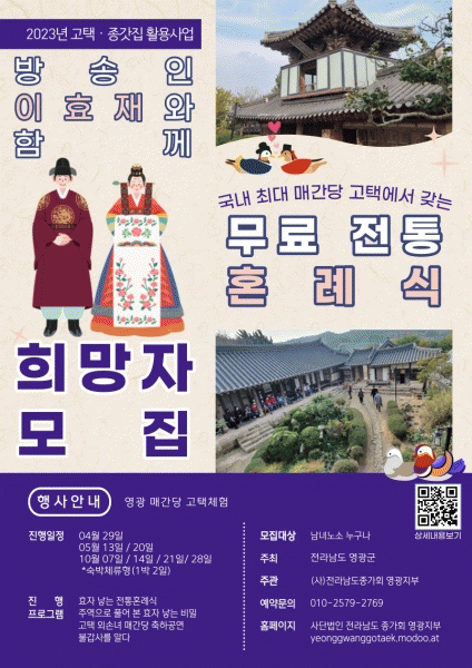 [¹Ìµð¾îÀü³² Á¦°¥´ëÁ¾ ±âÀÚ] Àü³² ¿µ±¤±ºÀº ¿À´Â 4¿ù 29ÀϺÎÅÍ Àü¶ó³²µµ Á¾°¡È¸ ¿µ±¤ÁöºÎ¿Í ÇÔ²² ¿µ±¤ ¸Å°£´ç ÀÏ¿ø¿¡¼ ´Ù¾çÇÑ ÇÁ·Î±×·¥À» ¿î¿µÇÑ´Ù. ¹®ÈÀçû °ø¸ð»ç¾÷ ¡®2023³âµµ °íÅá¤Á¾°«Áý Ȱ¿ë»ç¾÷¡¯ÀÇ ÀÏȯÀ¸·Î ÃßÁøµÇ´Â À̹ø »ç¡¦