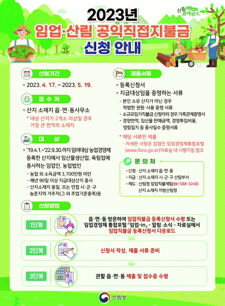 [¹Ìµð¾îÀü³² Á¦°¥´ëÁ¾ ±âÀÚ] Àü¶ó³²µµ´Â ÀÓ¾÷¡¤»ê¸²ÀÇ °øÀÍÀû ±â´É ÁõÁø°ú ÀÓ¾÷ÀÎ ¼Òµæ ¾ÈÁ¤À» À§ÇÑ ¡®2023³â ÀÓ¾÷¡¤»ê¸² °øÀÍÁ÷Á¢ÁöºÒ±Ý¡¯ ½ÅûÀ» ¹Þ´Â´Ù°í ¹àÇû´Ù. ½Åû ´ë»óÀÚ´Â ½Åû¼¿Í Áõºù¼·ù¸¦ °®Ãç ÀÓ¾÷Á÷ºÒ±Ý Áö±Þ ´ë»ó »êÁö¡¦