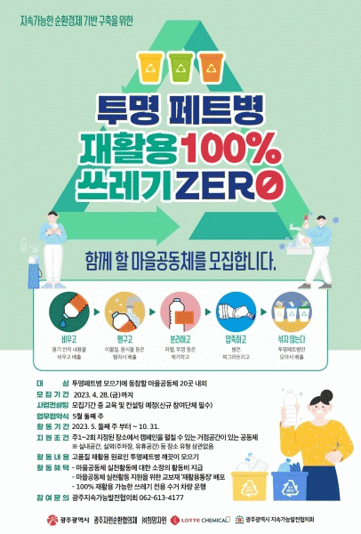 [¹Ìµð¾îÀü³² Á¦°¥´ëÁ¾ ±âÀÚ] ±¤ÁÖ±¤¿ª½Ã´Â ±¤ÁÖ±¤¿ª½ÃÁö¼Ó°¡´É¹ßÀüÇùÀÇȸ¿Í 2023³â ÀÚ¿ø¼øÈ¯ ½Ã¹Î½Çõ »ç¾÷À» ÃßÁøÇÑ´Ù. ÀÚ¿ø¼øÈ¯ ½Ã¹Î½ÇõÀº ¿ÃÇØ ù »ç¾÷À¸·Î ¿À´Â 28ÀϱîÁö ¡®Åõ¸í ÆäÆ®º´ ÀçȰ¿ë 100% ¾²·¹±â ZERO Ä·ÆäÀΡ¯À» ÇÔ²²ÇÒ¡¦
