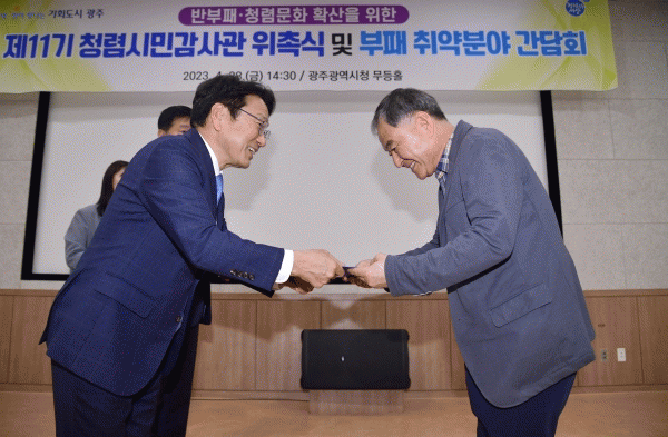 [¹Ìµð¾îÀü³² Á¦°¥´ëÁ¾ ±âÀÚ] û·Å 1±Þ¼ö ±¤Áֽø¦ ¸¸µé±â À§ÇØ Á¦11±â û·Å½Ã¹Î°¨»ç°üÀÌ º»°ÝÀûÀΠȰµ¿¿¡ ³ª¼±´Ù. °±âÁ¤ ±¤ÁÖ±¤¿ª½ÃÀåÀº 28ÀÏ ½Ãû ¹«µîȦ¿¡¼ Á¦11±â û·Å½Ã¹Î°¨»ç°ü 50¸í¿¡°Ô À§ÃËÀåÀ» ¼ö¿©Çß´Ù. À̳¯ À§ÃËµÈ Ã»·Å½Ã¡¦