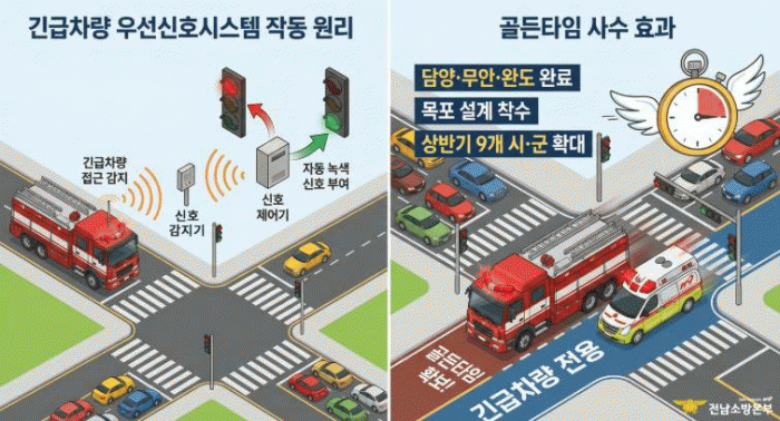 [¹Ìµð¾îÀü³² Á¦°¥´ëÁ¾ ±âÀÚ]Àü³²¼Ò¹æº»ºÎ´Â ÈÀ硤±¸±Þ µî À§±Þ »óȲ ¹ß»ý ½Ã ¼Ò¹æÂ÷¿Í ±¸±ÞÂ÷ÀÇ ½Å¼ÓÇÑ ÇöÀå µµÂøÀ» µ½±â À§ÇØ ¡®±ä±ÞÂ÷·® ¿ì¼±½ÅÈ£½Ã½ºÅÛ¡¯À» È®´ë ¿î¿µÇÑ´Ù°í ¹àÇû´Ù. ¡®±ä±ÞÂ÷·® ¿ì¼±½ÅÈ£½Ã½ºÅÛ¡¯Àº ¼Ò¹æÂ÷³ª ±¸±ÞÂ÷¡¦