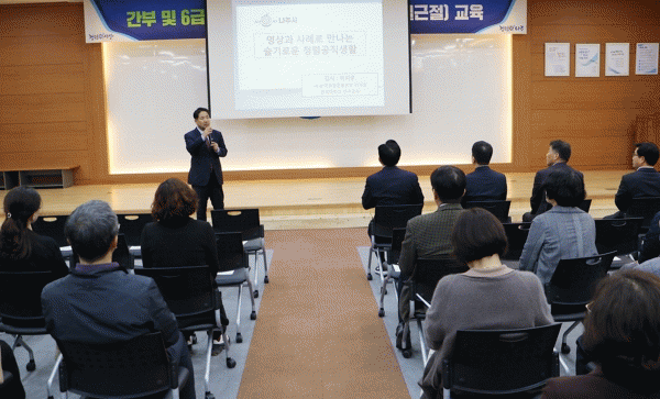 [¹Ìµð¾îÀü³² Á¦°¥´ëÁ¾ ±âÀÚ] Àü¶ó³²µµ ³ªÁֽô ÃÖ±Ù ½Ãû»ç ´ëȸÀǽǿ¡¼ 5±Þ ÀÌ»ó °£ºÎ°ø¹«¿ø, 6±Þ ÆÀÀåÀ» ´ë»óÀ¸·Î ¡®Ã»·Å ¹× °©Áú±ÙÀý¡¤Çൿ°·É¡¯ ±³À°À» °¡Á³´Ù°í 27ÀÏ ¹àÇû´Ù. À̹ø ±³À°Àº Åõ¸íÇϰí û·ÅÇÑ °øÁ÷»çȸ ¹®È Á¤ÂøÀ»¡¦