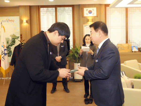 [¹Ìµð¾îÀü³² Á¦°¥´ëÁ¾ ±âÀÚ] Á¶¼±ÆÇ½ºÅ¸ 1´ë ¿ì½ÂÀÚÀÌ¸ç ¿µ±¤±º ¸í¿¹È«º¸´ë»ç ±è»ê¿ÁÀÌ Áö³ 3¿ù 21ÀÏ ¿µ±¤±ºÃ» ±º¼ö½ÇÀ» ¹æ¹®ÇØ °íÇâ»ç¶û±âºÎ±Ý 3¹é¸¸¿øÀ» ±âºÎÇß´Ù. 2008³â Á¦9ȸ ¹ý¼ºÆ÷´Ü¿ÀÁ¦ Àü±¹ ±¹¾Ç°æ¿¬´ëȸ ÀϹݺΠÀå¿øÀ» ½ÃÀÛ¡¦