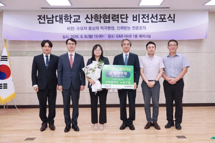 [¹Ìµð¾îÀü³² Á¦°¥´ëÁ¾ ±âÀÚ]Àü³²´ëÇб³ »êÇÐÇù·Â´Ü ³ëµ¿Á¶ÇÕ¿øµéÀÌ ¹ßÀü±â±Ý 1000¸¸¿øÀ» ±âºÎÇϸç, ´ëÇÐ °øµ¿Ã¼ÀÇ ÁÖüÀû ÀÏ¿øÀ¸·Î¼ Ã¥ÀÓ°ú ¿¬´ë¸¦ ´ÙÁ³´Ù. 22ÀÏ Àü³²´ë¿¡ µû¸£¸é Áö³ 8ÀÏ G¡¤R HUB 1Ãþ ȸÀǽǿ¡¼ ¡®Àü±¹´ëÇг뵿Á¶ÇÕ¡¦