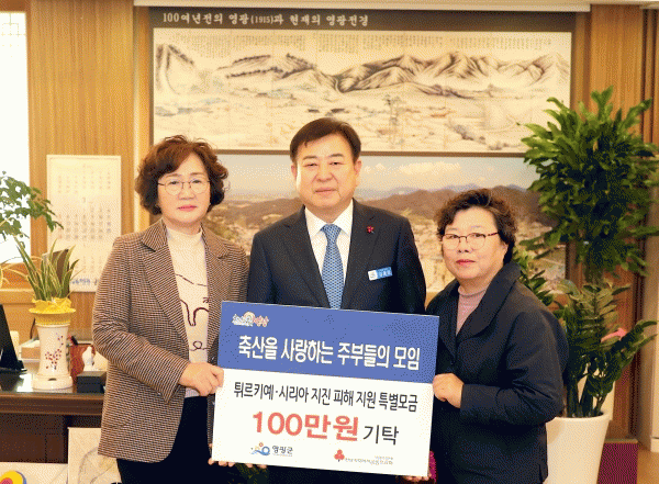 [¹Ìµð¾îÀü³² Á¦°¥´ëÁ¾ ±âÀÚ] Æ¢¸£Å°¿¹¡¤½Ã¸®¾Æ ´ëÁöÁøÀ¸·Î ±âºÎ ¹°°áÀÌ À̾îÁö°í ÀÖ´Â °¡¿îµ¥ Ãà»êÀ» »ç¶ûÇÏ´Â ÁֺεéÀÇ ¸ðÀÓ¿¡¼ Áö³ 7ÀÏ ¿µ±¤±º¿¡ ¼º±Ý 100¸¸¿øÀ» ±âŹÇß´Ù. À̹ø ¼º±ÝÀº ¸Åü¸¦ ÅëÇØ ±âÀûÀûÀÎ ±¸Á¶ ¼Ò½ÄÀ» ±â´Ù¸®¸é¼¡¦