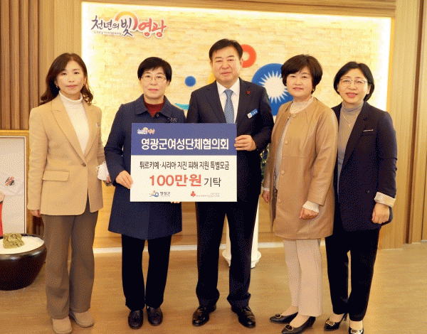 [¹Ìµð¾îÀü³² Á¦°¥´ëÁ¾ ±âÀÚ] ¿µ±¤±º¿©¼º´ÜüÇùÀÇȸ´Â Áö³ 7ÀÏ ¿µ±¤±º¿¡ Æ¢¸£Å°¿¹¡¤½Ã¸®¾Æ Áö¿ª ´ëÁöÁø ÇÇÇØ º¹±¸¿Í ÀÌÀç¹Î Áö¿øÀ» À§ÇØ ¼º±Ý 100¸¸¿øÀ» ±âŹÇß´Ù. ³ªÀºÁÖ È¸ÀåÀÌ À̲ô´Â ¿µ±¤±º¿©¼º´ÜüÇùÀÇȸ´Â ¿µ±¤±ºÀÇ 10°³ ¿©¼º´Üü¡¦