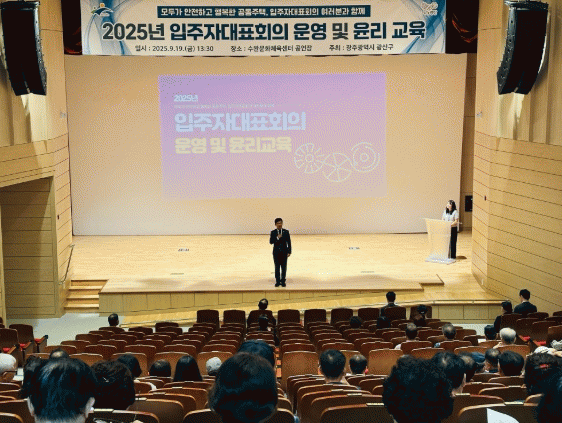 [¹Ìµð¾îÀü³² Á¦°¥´ëÁ¾ ±âÀÚ]±¤ÁÖ ±¤»ê±¸°¡ 19ÀÏ ¼ö¿Ï¹®ÈüÀ°¼¾ÅÍ¿¡¼ °øµ¿ÁÖÅà ÀÔÁÖÀÚ´ëǥȸÀÇ ±¸¼º¿ø 150¿© ¸íÀ» ´ë»óÀ¸·Î ÀÔÁÖÀÚ´ëǥȸÀÇ ¿î¿µ ¹× À±¸®±³À°À» ½Ç½ÃÇß´Ù. À̹ø ±³À°Àº °øµ¿ÁÖÅà °ü¸®ÀÇ Åõ¸í¼º°ú ¾ÈÁ¤¼ºÀ» ³ôÀ̱â À§ÇØ ¡¦