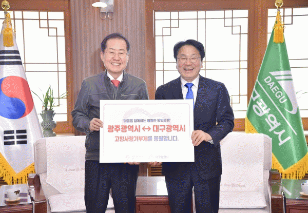 [¹Ìµð¾îÀü³² Á¦°¥´ëÁ¾ ±âÀÚ] °±âÁ¤ ±¤ÁÖ±¤¿ª½ÃÀå°ú È«ÁØÇ¥ ´ë±¸±¤¿ª½ÃÀåÀÌ °íÇâ»ç¶û±âºÎÁ¦ÀÇ ¼º°øÀûÀÎ ¾ÈÂø°ú Ȱ¼ºÈ¸¦ À§ÇØ ¼ÕÀ» ¸ÂÀâ¾Ò´Ù. °±âÁ¤ ±¤ÁÖ½ÃÀåÀº 28ÀÏ ´ë±¸½ÃûÀ» ã¾Æ È«ÁØÇ¥ ´ë±¸½ÃÀå°ú °íÇâ»ç¶û±âºÎÁ¦ »óÈ£ ±âºÎ Çà»ç¡¦