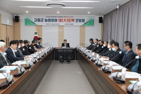 [¹Ìµð¾îÀü³² Á¦°¥´ëÁ¾ ±âÀÚ] °íÈﱺÀÌ 24ÀÏ ±ºÃ» Èï¾çȦ¿¡¼ ³ó¾÷Àΰú ÇÔ²² ³óÁ¤ÀÇ »õ·Î¿î ¼ºÀå µ¿·ÂÀ» ¸¶·ÃÇϱâ À§ÇØ ³ó¡¤Ãà»ê°ü·Ã Á÷´É´Üü ´ëÇ¥ 30¿©¸íÀÌ Âü¼®ÇÑ °¡¿îµ¥ ¡®³ó¾÷ºÐ¾ß ´ëµµ¾àÀ» À§ÇÑ °£´ãȸ¡¯¸¦ °³ÃÖÇß´Ù. À̹ø °£´ãȸ´Â¡¦