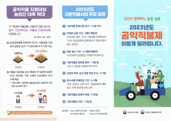 [¹Ìµð¾îÀü³² Á¦°¥´ëÁ¾ ±âÀÚ] °Áø±ºÀº ¿À´Â 4¿ù 28ÀϱîÁö 2023³â ±âº»Çü °øÀÍÇü Á÷Á¢ÁöºÒ±Ý ½ÅûÀ» ¼ÒÀçÁö À¾¸é»ç¹«¼Ò¿¡¼ Á¢¼öÇÑ´Ù°í 26ÀÏ ¹àÇû´Ù. ±âº»Çü °øÀÍÁ÷ºÒÁ¦´Â ³ó¾÷¡¤³óÃÌÀÇ °øÀͱâ´É ÁõÁø°ú ³ó¾÷ÀÎÀÇ ¼Òµæ¾ÈÁ¤À» À§ÇØ ÀÏÁ¤ ¡¦