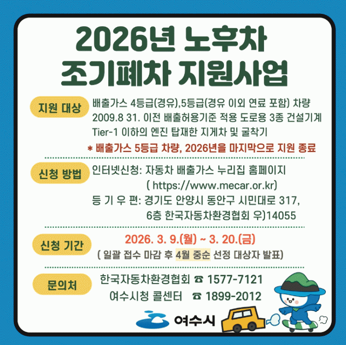 [¹Ìµð¾îÀü³² ÀüÇü¼º ±âÀÚ]¿©¼ö½Ã´Â ¹Ì¼¼¸ÕÁö Àú°¨°ú ´ë±âȯ°æ °³¼±À» À§ÇØ ¿À´Â 9ÀϺÎÅÍ 20ÀϱîÁö 2ÁÖ°£ ¡®³ëÈÄÂ÷ Á¶±âÆóÂ÷ Áö¿ø»ç¾÷¡¯ ½ÅûÀ» ¹Þ´Â´Ù°í ¹àÇû´Ù. ÀÌ »ç¾÷Àº ¹èÃâ°¡½º Àú°¨ È¿°ú°¡ Å« ³ëÈÄ Â÷·®ÀÇ Á¶±â ÆóÂ÷¸¦ À¯µµÇϱâ À§¡¦