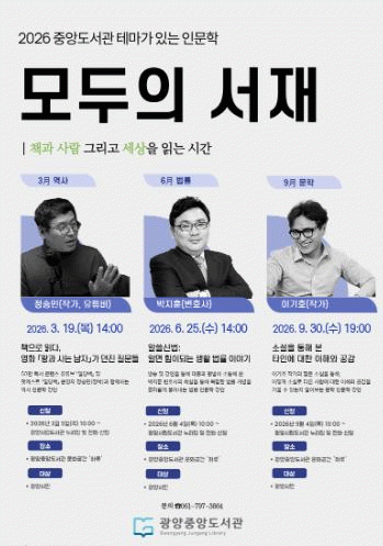 [¹Ìµð¾îÀü³² ÀÓ¼º¿Ï ±âÀÚ]±¤¾çÁß¾Óµµ¼°üÀÌ ½Ã¹ÎÀÇ Àι®ÇÐÀû ¼Ò¾çÀ» ³ôÀÌ°í µ¶¼¹®È¸¦ È®»êÇϱâ À§ÇØ 3¿ùºÎÅÍ 9¿ù±îÁö ¸í»ç ÃÊû Àι®ÇÐ °¿¬ '¸ðµÎÀÇ ¼Àç'¸¦ ¿î¿µÇÑ´Ù. À̹ø °¿¬Àº ¡®Ã¥°ú »ç¶÷, ±×¸®°í ¼¼»óÀ» Àд ½Ã°£¡¯À» ÁÖÁ¦·Î¡¦