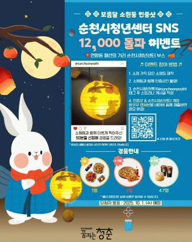 [¹Ìµð¾îÀü³² ÀÓ¼º¿Ï ±âÀÚ]¼øÃµ½Ã û³â¼¾ÅÍ´Â °ø½Ä SNS °¡ÀÔÀÚ°¡ 1¸¸ 2õ ¸íÀ» µ¹ÆÄÇÔ¿¡ µû¶ó û³â°ú ½Ã¹ÎµéÀÇ ¼º¿ø¿¡ º¸´äÇϱâ À§ÇØ ±â³ä À̺¥Æ®¸¦ ÁøÇàÇÑ´Ù°í ¹àÇû´Ù. û³â¼¾ÅÍ´Â 2018³âºÎÅÍ 5°³ÀÇ È«º¸ ä³ÎÀ» ¿î¿µÇØ ¿ÔÀ¸¸ç, Áö³ 15¡¦