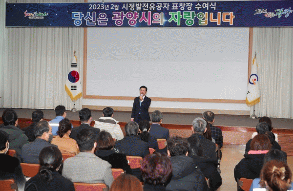 [¹Ìµð¾îÀü³² ÀÓ¼º¿Ï ±âÀÚ] ±¤¾ç½Ã´Â 3ÀÏ ½Ãû ´ëȸÀǽǿ¡¼ ½ÃÁ¤¹ßÀü À¯°ø ½Ã¹Î 34¸í¿¡°Ô ǥâÀåÀ» ¼ö¿©Çß´Ù. À̳¯ ¼ö¿©½ÄÀº Á¤ÀÎÈ ±¤¾ç½ÃÀå°ú ½Ã¹Î ¼ö»óÀÚ, ÃàÇϰ´ µî 100¿©¸íÀÌ Âü¼®ÇÑ °¡¿îµ¥ µµÁö»ç ǥâÀå ¼ö¿©, ½ÃÀå ǥâÀå ¼ö¿©,¡¦